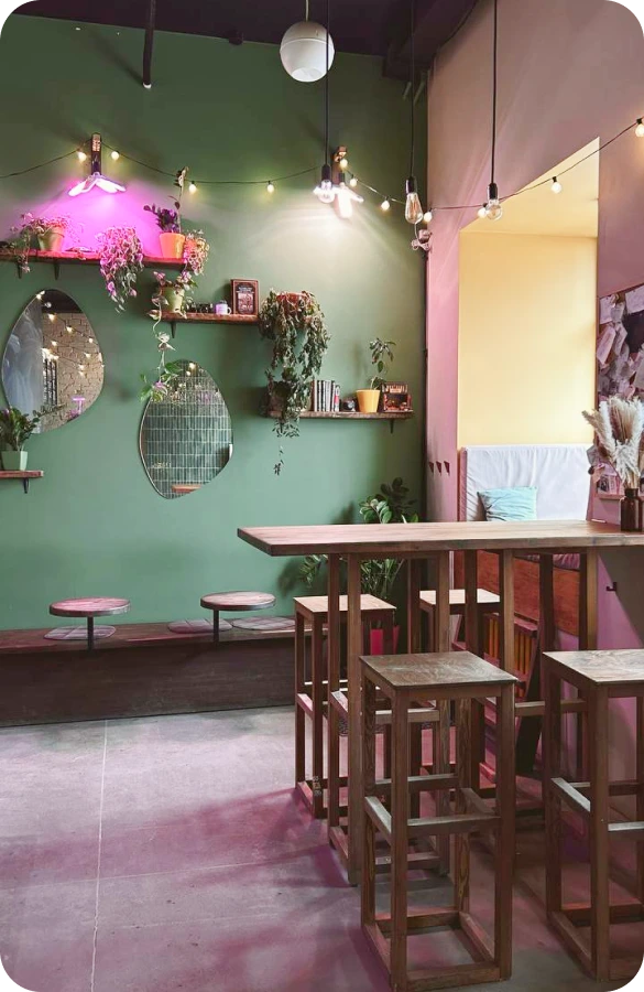Каждое пространство называется «домом» и создаётся с целью подарить гостю радость, напитав тело и дух. Основной акцент — на сервисе и живом взаимодействии с каждым, кто заходит внутрь. Интерьер, ритм и напитки настраивают на неспешное погружение в центр Казани — с необычным баббл-ти в руках.